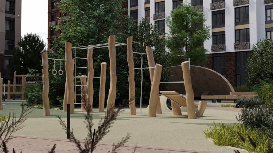 Каждая территория уникальна: натуральные материалы, игровые и спортивные зоны, арт-объекты, места для отдыха, тематические площадки, включая скейт-парк и скалодром.