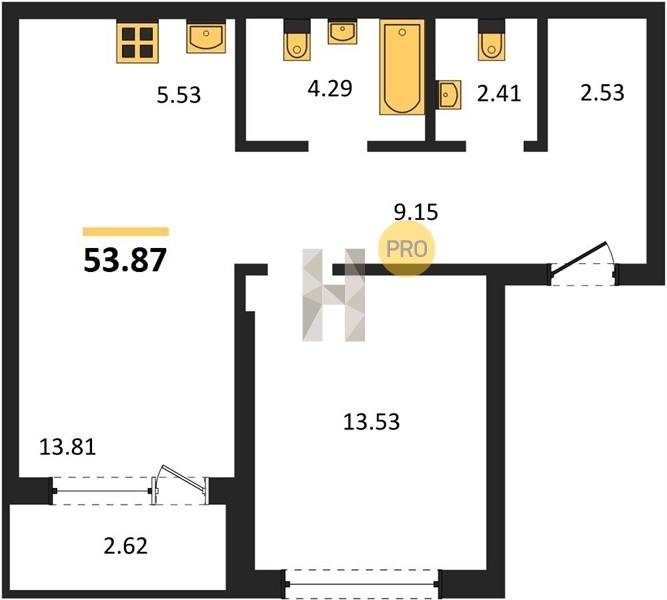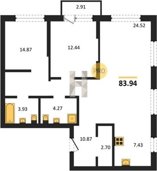 Площадь от 24.6 м2