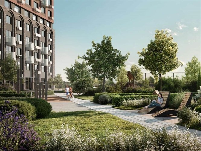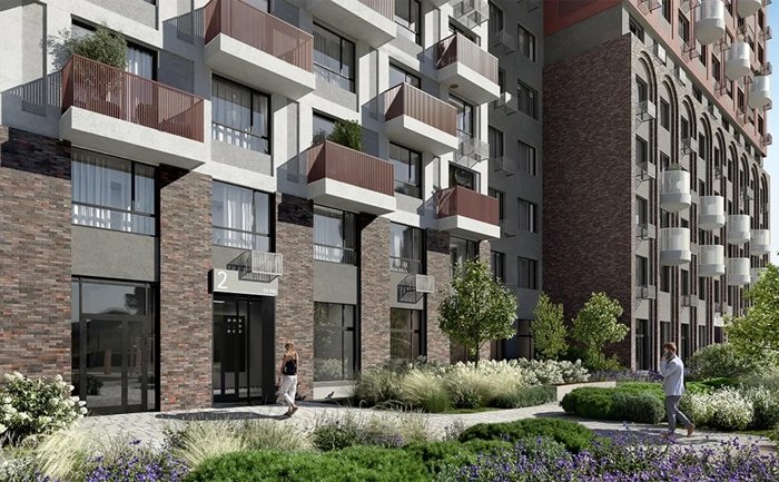 В проекте предусмотрен свой приватный двор окружённый зеленью. Территория комплекса разделена на несколько зон: для детей младшего и среднего возраста, релакс-пространство с гамаками и спортивная зона с воркаут и настольным теннисом. Коммерческие помещения располагаются на первых этажах проекта.