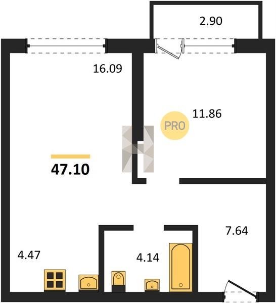 Площадь от 47.48 м2